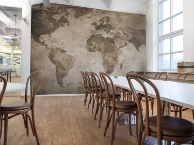 Whether you’re planning to conquer the world or just planning a trip, this world map wall mural will inspire you. Choose your own world view with this spinnable world map designs – enter your wall dimensions and find your favorite spot in the world.