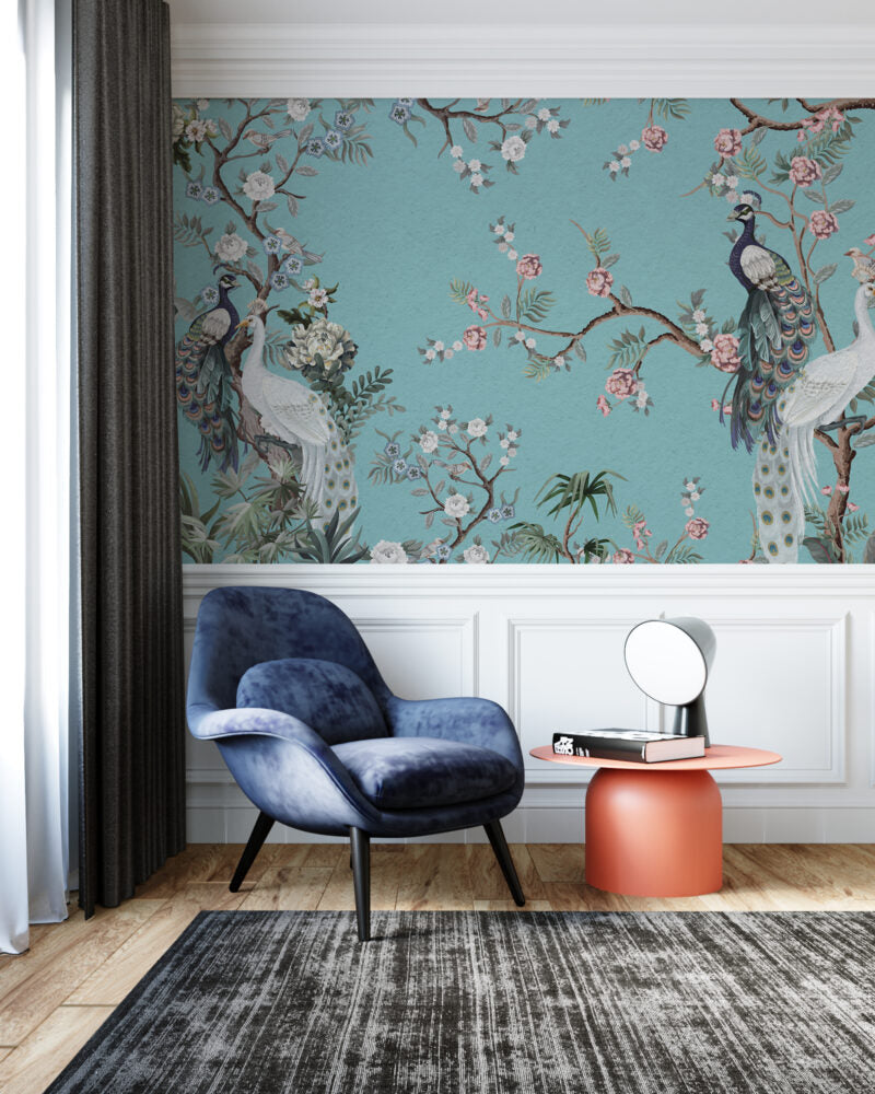 BLUE PEACOCKS WITH FLOWERS DESIGN