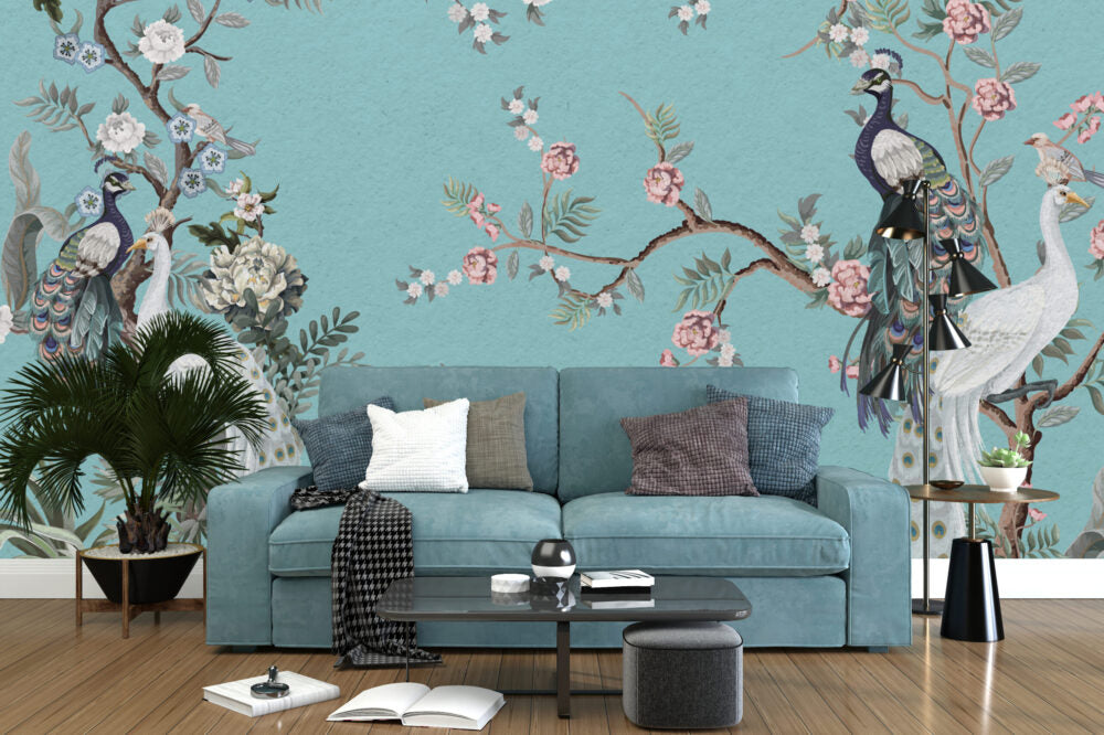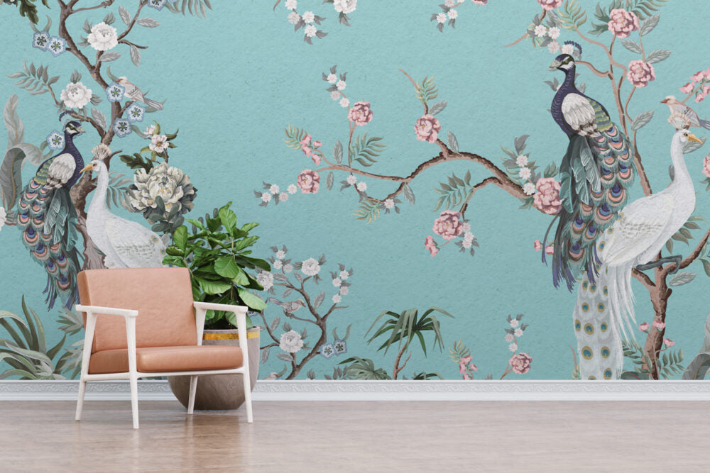Blue Peacocks With Flowers Design BWMUR8048-T