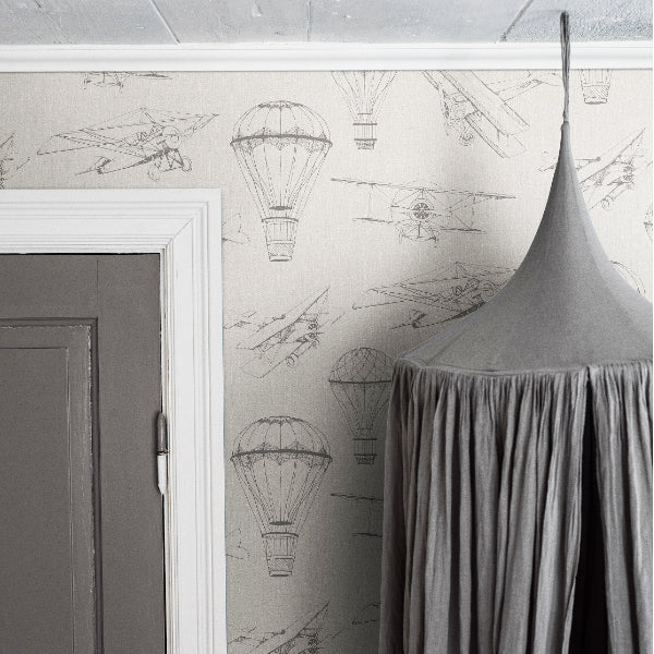 Uplifting, airy and enticing, Bon Voyage takes your on a journey of discovery! Choose a plane or hot air balloon to take to the skies for your adventure! Seen here in the Neutral colour.