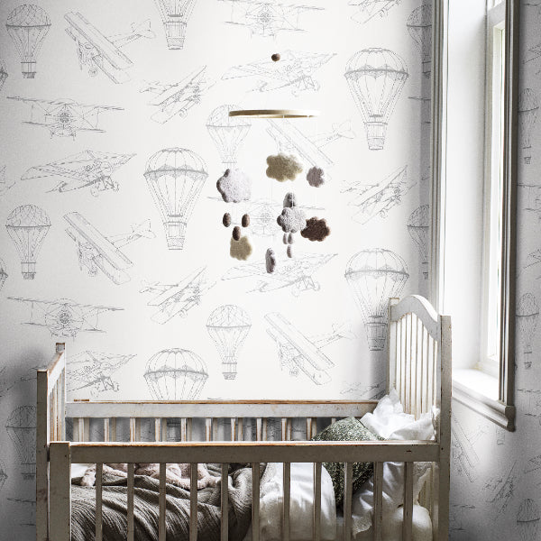 Uplifting, airy and enticing, Bon Voyage takes your on a journey of discovery! Choose a plane or hot air balloon to take to the skies for your adventure! Seen here in the White colour.