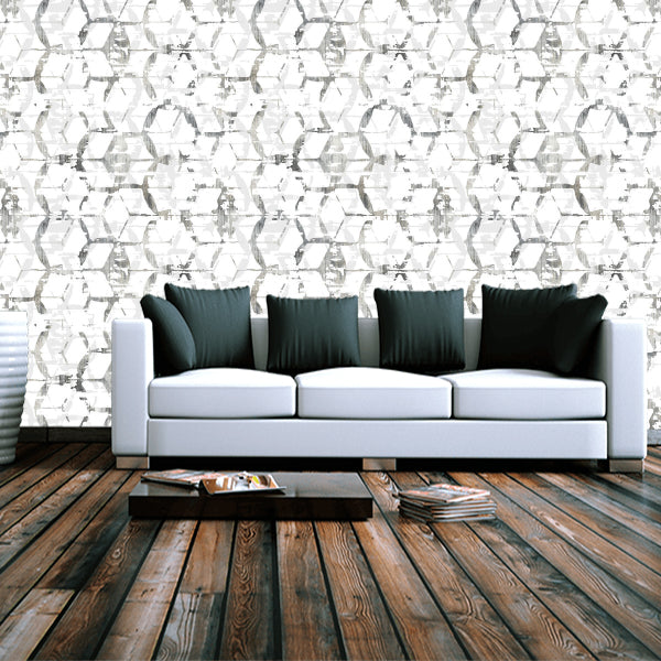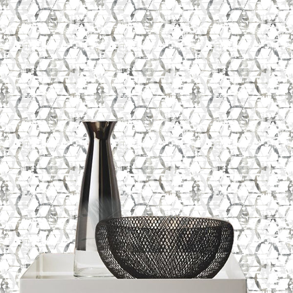 An all over water colour effect design, featuring overlaying geometric shapes to create a stunning effect. Seen here in the Black colourway.