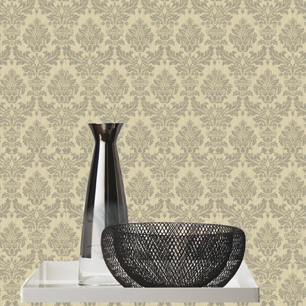 Broken String Damask Gold/Black Design Wallpaper