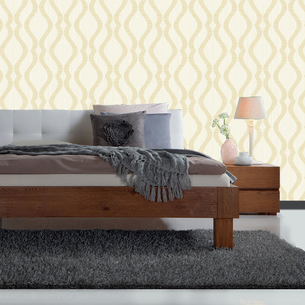 A gold geometric design on a white vertical straw weave. Other colourways are available.