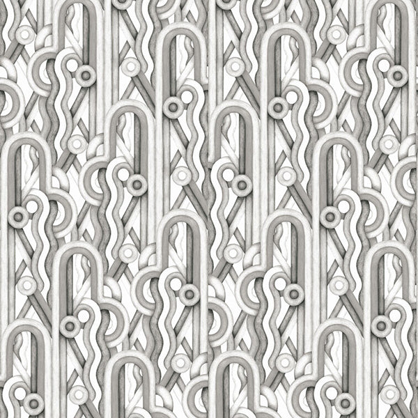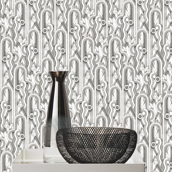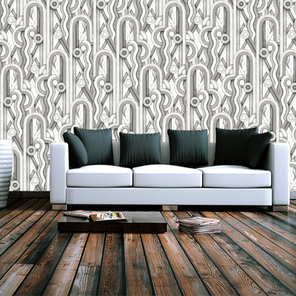A striking and eye catching design; showcasing busy and flamboyant shapes, filling this design with joy. Archways and circles overlap in an organised and flowing manner - Adding true artistry and creativity to your walls. Seen in the Black/White colourway.