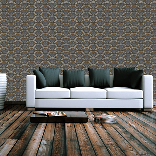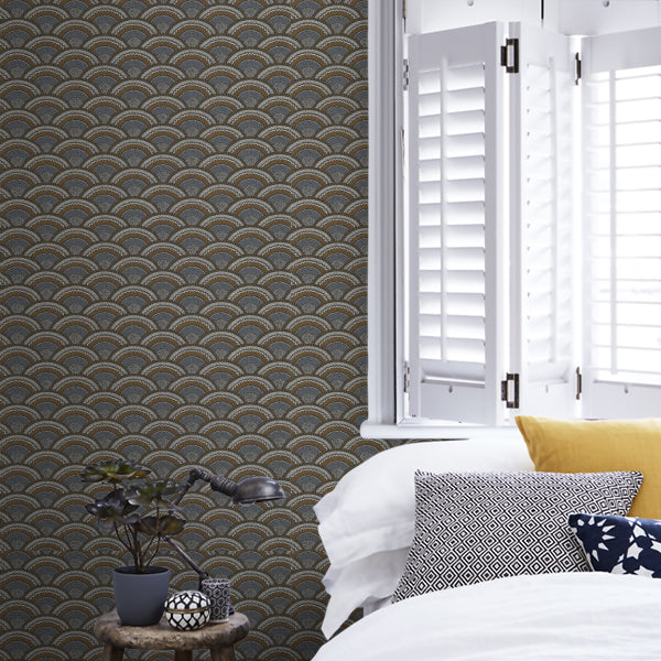 Inspired by the works of Otto Wagner, this palmette motif design showcases an overlay of colour and contrast, bringing your walls to life. Please note: This product is wide width. Seen here in the Carbone / Dore colourway.