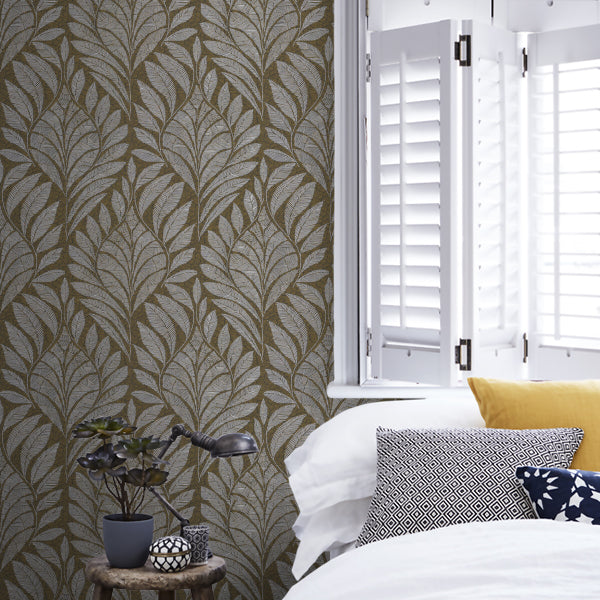 A delicate all over trailing leaf design that showcases a modern and stylish printed effect. Please note: This product is wide width. Seen here in the Carbone colourway.