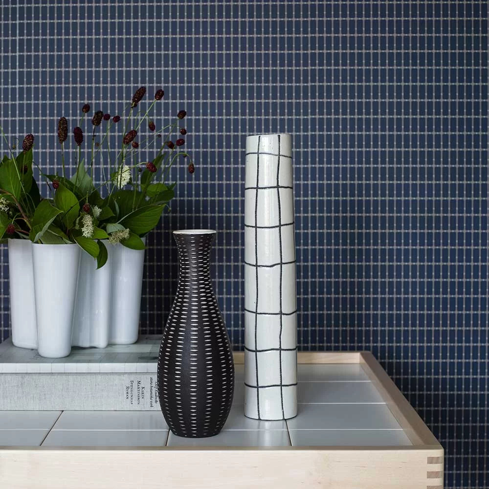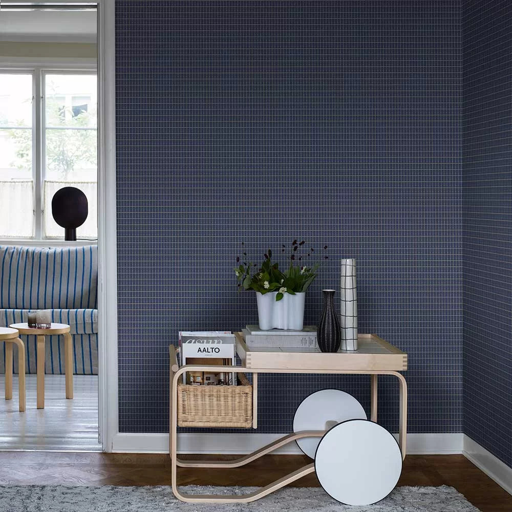 With a pattern inspired by a raw brick façade, our M.I.T wallpaper with a deep blue background and grey detailing provides a neat yet informal aesthetic. Originally designed for fabrics, this pattern is the epitome of Alvar Aalto’s design in its brilliant simplicity. The perfect choice for on-trend living rooms or hallways, it is a distinctive blend of modernist refinement and personal expression.