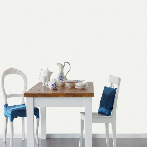 Linen is a plain wallpaper with a structured surface, which is tactile and harmonious. The Linen collection features natural colours that follow the seasons, shown here in Birch White. This wallpaper has a free pattern match.