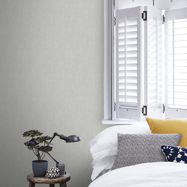 Linen is a plain wallpaper with a structured surface, which is tactile and harmonious. The Linen collection features natural colours that follow the seasons, shown here in a dove grey. This wallpaper has a free pattern match.