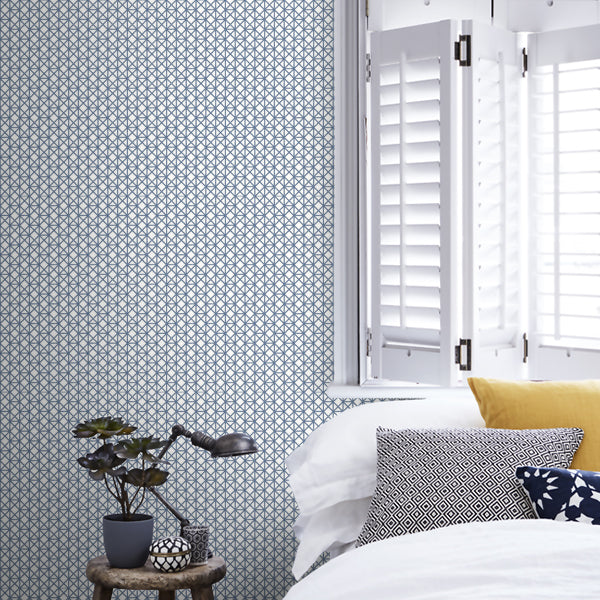A simple yet intricate design that showcases a delicate geometric print, adding subtle colour and dimension to your walls. Seen here in the Blue colourway.