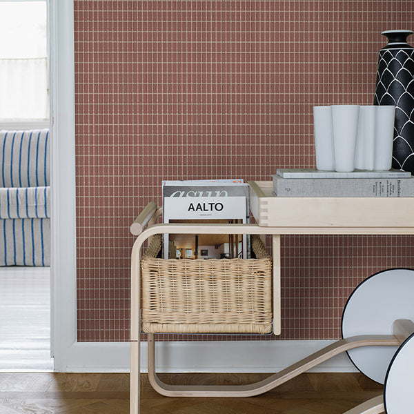 With a pattern inspired by a raw brick façade, our M.I.T wallpaper with a deep blue background and grey detailing provides a neat yet informal aesthetic. Originally designed for fabrics, this pattern is the epitome of Alvar Aalto’s design in its brilliant simplicity. The perfect choice for on-trend living rooms or hallways, it is a distinctive blend of modernist refinement and personal expression.