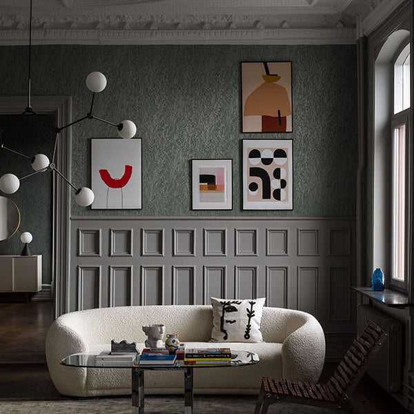 The shimmering ocean by the Californian coastline and the luxurious lifestyle we associate with the movie stars in Malibu have inspired this beautiful pattern. The marbling is printed on a metallic-shimmering base, giving the room a grand and stylish yet calm atmosphere.