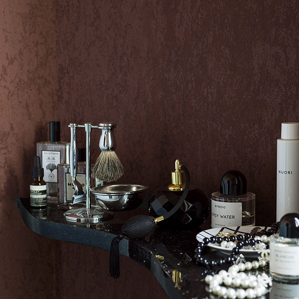 The shimmering ocean by the Californian coastline and the luxurious lifestyle we associate with the movie stars in Malibu have inspired this beautiful pattern. The marbling is printed on a metallic-shimmering base, giving the room a grand and stylish yet calm atmosphere.