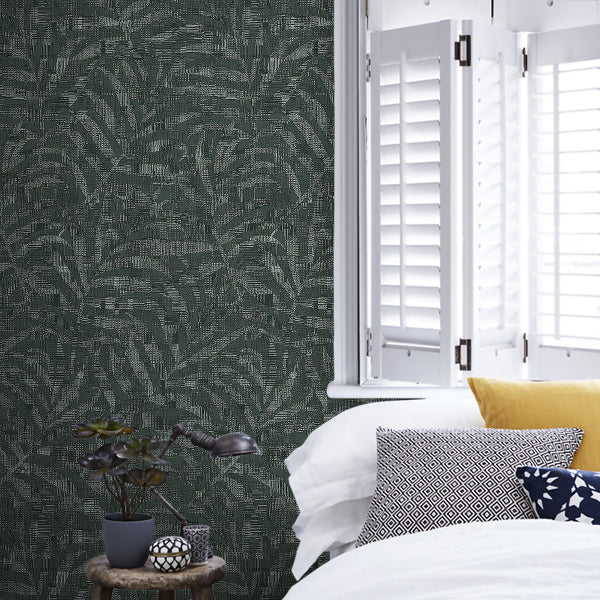 The dramatic landscape, tall palm trees and cool architecture make Palm Springs a fantastic source of inspiration for contemporary interiors. With this soft-contoured palm leaf pattern on the walls, the room gains a truly sophisticated atmosphere, a calm surface with a beautiful pearlescent shimmer.