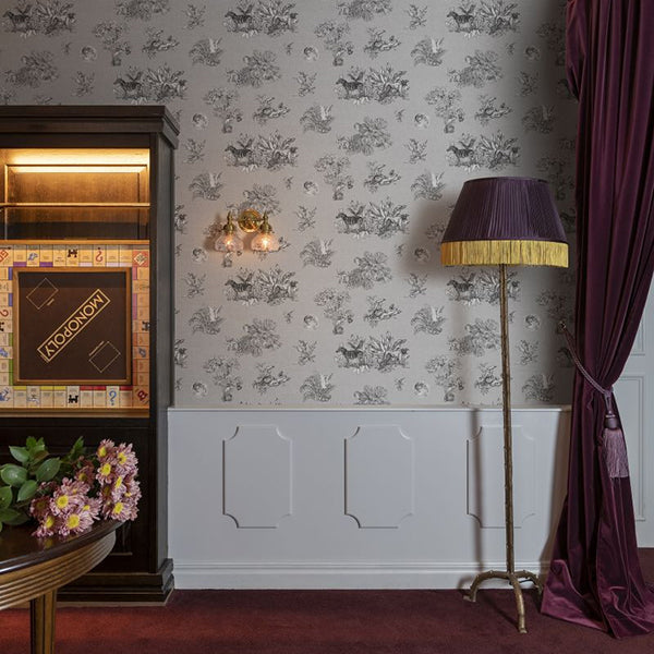 Is there anything quite as classic as a toile? The French pattern has decorated walls since the 18th century but has never been quite as whimsical as now. Because if you look closely, the zebra is wearing a hat, and the fox is kicking back with a glass of wine – we’ve put the quirky into a classic.