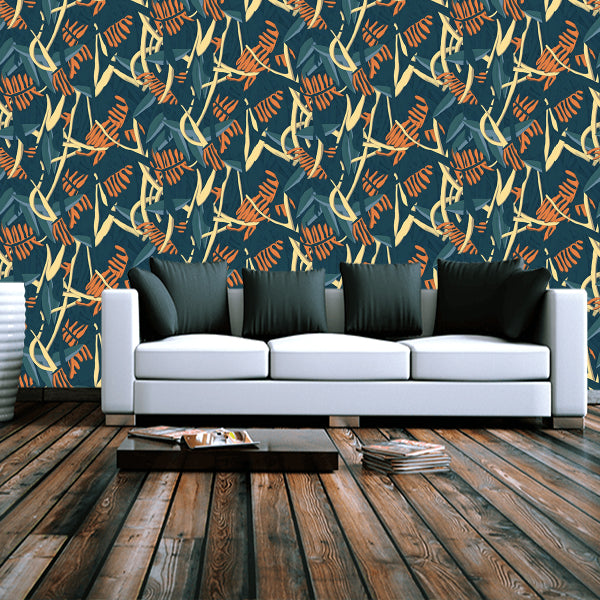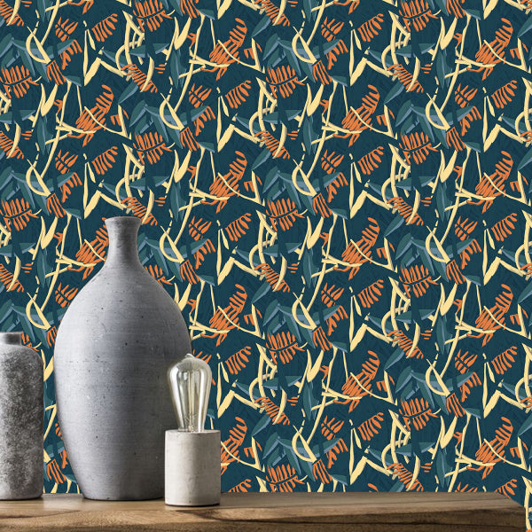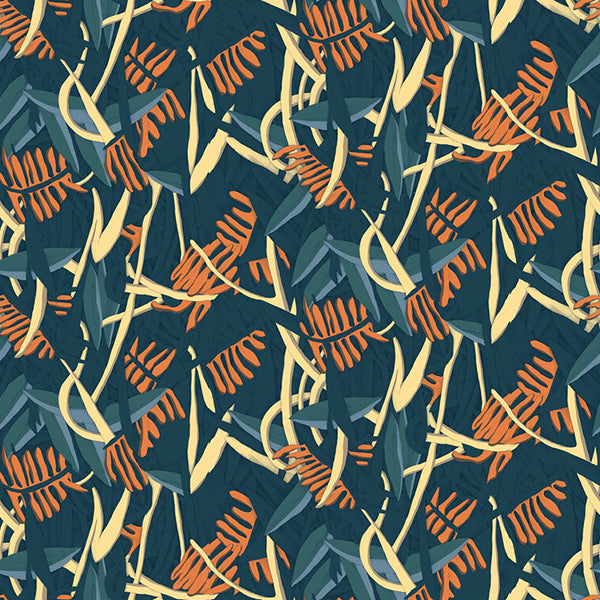 A gorgeous overlapping leaf design, featuring stunning and vibrant colour - give your walls a tropical touch with this stunning design! Seen in the Green/Orange colourway.