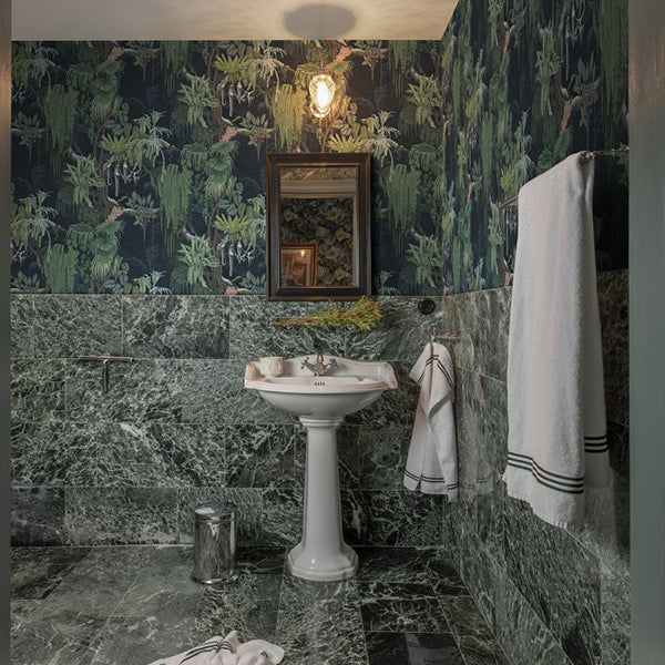 Nothing is quite what it seems in the mythical jungles of Madagascar, home of the chameleon. A suitable animal to inspire this multihued wallpaper, with a hand-painted pattern that shifts as you move through the space. Works equally well in the kitchen as the living room.