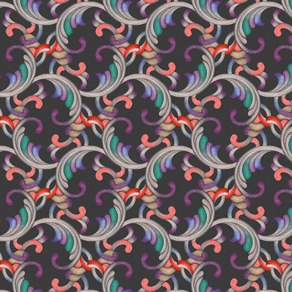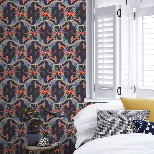 An all over gorgeous and romantic design; with a fresh take on a traditional damask style. Showcasing entwining detail with lots of movement, giving your walls a glamorous touch. Seen in the Black colourway.