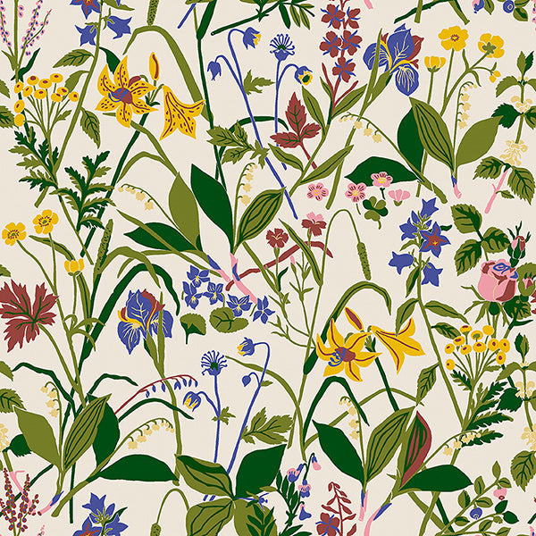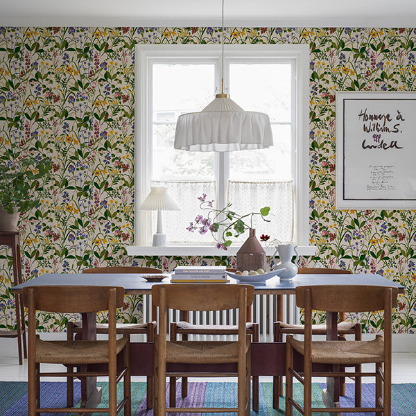 Coloured in a delicate, soft palette of yellow, green, white and blue, our Ros och Lilja wallpaper recreates the classic 1940s Swedish textile design of Gocken Jobs. Bringing the splendour of Swedish summer flowers into your home, it creates a wonderfully relaxed and soothing space. Hang it in your bedroom or kitchen for effortless elegance.