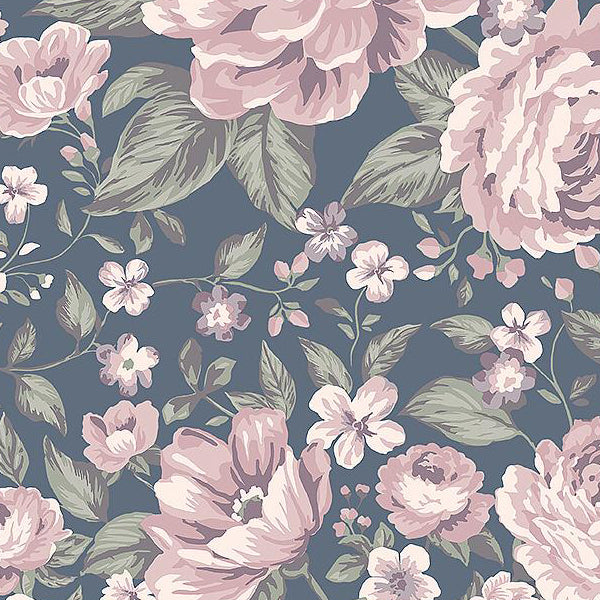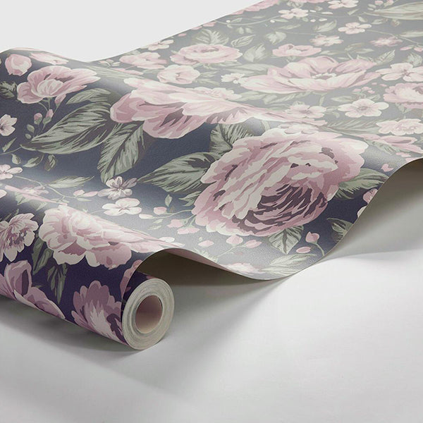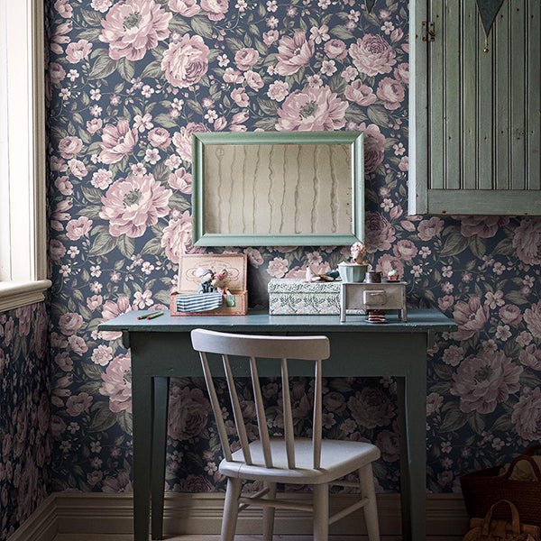Strikingly romantic and delicate, lush climbing roses fill your walls with nature, perfect for any room! Seen here in the Dark Blue colourway.