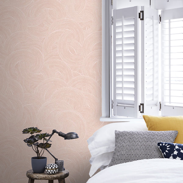 A free and swirling pattern, perceived more like movement when seen upon the wall. Vivid and energetic. Glimmers of metallic tones highlight the twisting design, giving an elegant shimmer that changes with the light. Spirito comes in several colours to match all personalities.
