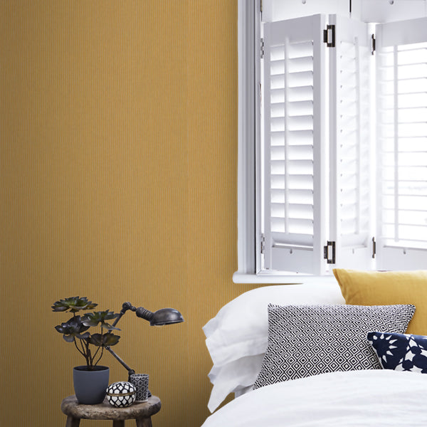 A simple and stylish all over plain design, pairing perfectly with a statement design or on its own; featuring a delicate vertical stripe. Please note: This design is a free pattern match. Seen here in the Moutarde colourway.