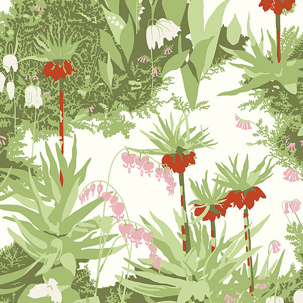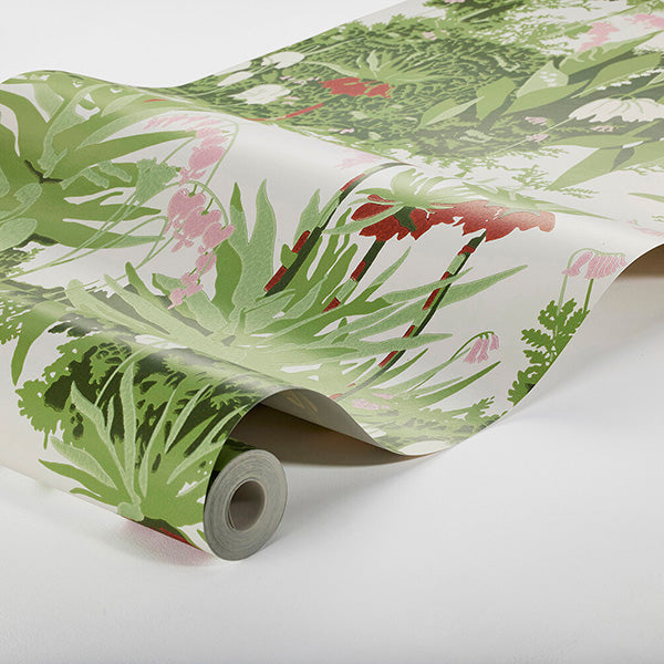 A celebration of the outdoors, our Kejsarkrona wallpaper is taken from the archives of popular Danish designer, Arne Jacobsen. Bringing to life the loveliness of the crown imperial plant in bloom with its bold red flowers set against a palette of green foliage and soft white and pink flowers, this paper creates a magnificent feature wall. Ideal for adding a tactile character to the walls of your living room or dining area.