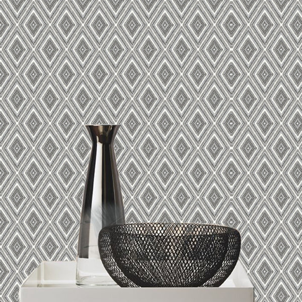 A mesmerising all over geometric design, featuring delicate linear details that give your walls a personalised touch. Please note: Actual pattern repeat is 26.5cm. Seen here in the Black colourway.
