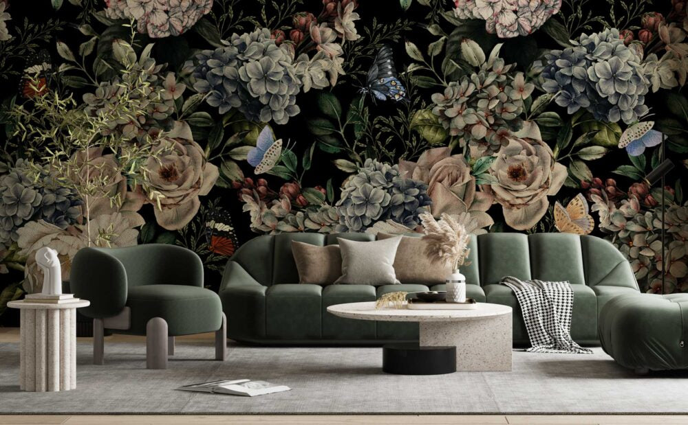 DARK FLOWERS WITH BUTTERFLIES DESIGN