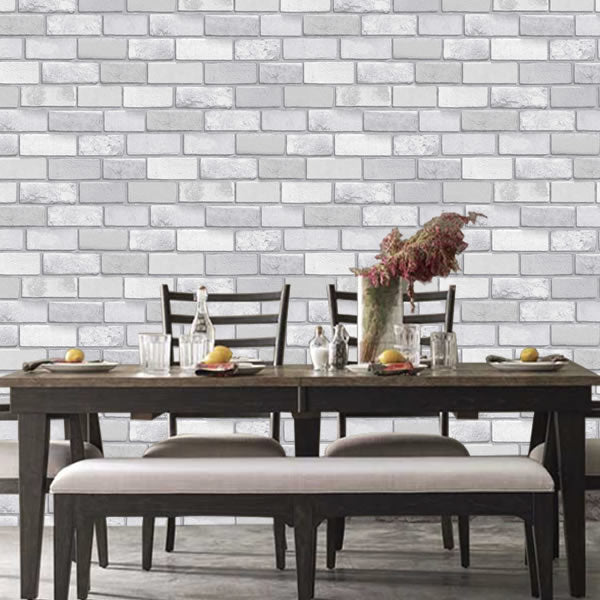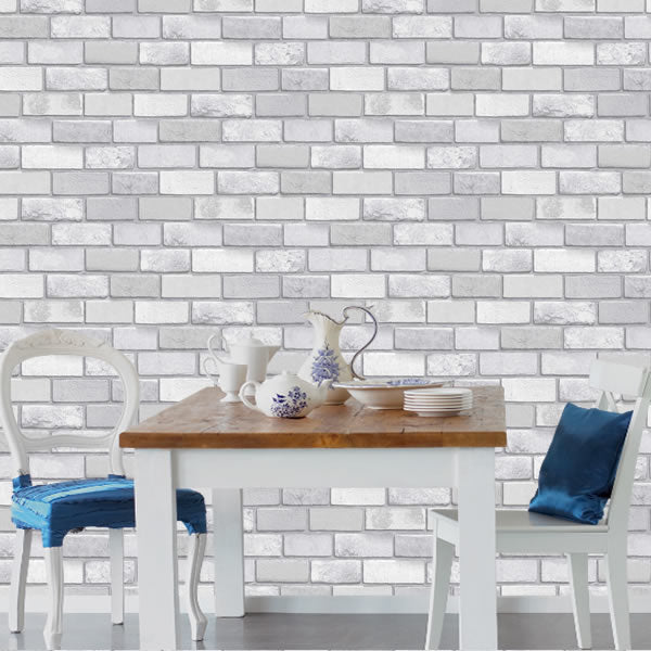 A realistic looking brick effect wallpaper in a silver colour with glitter detail