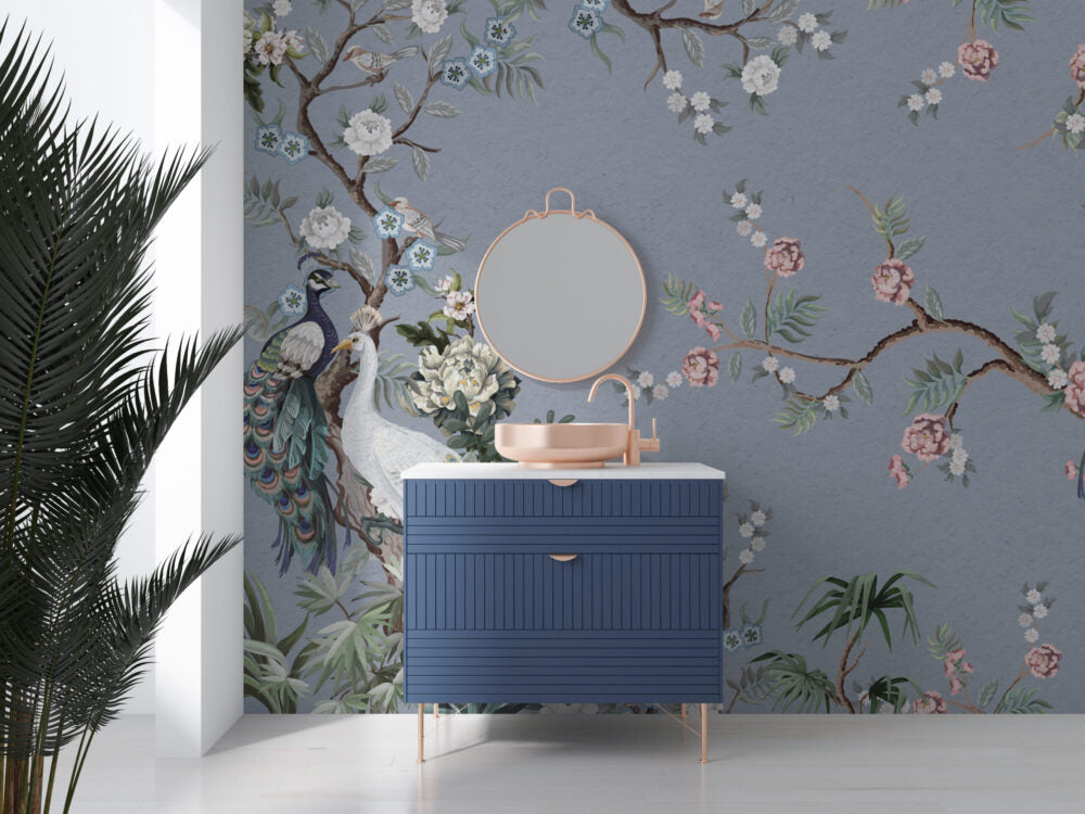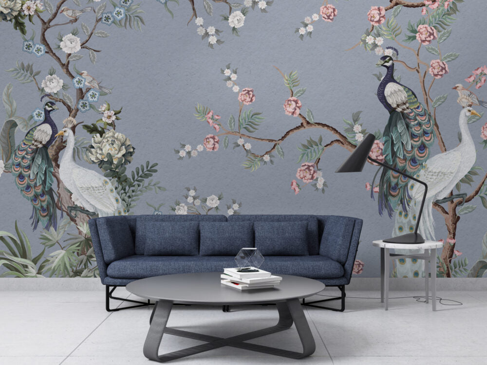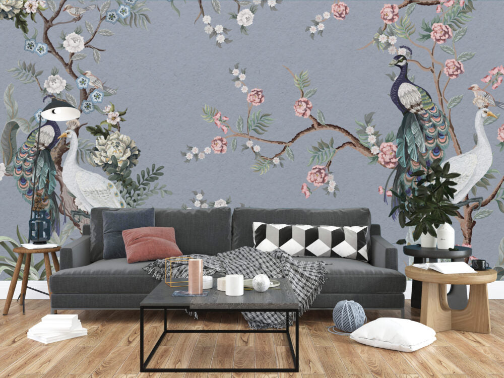 Grey Peacocks With Flowers Design BWMUR8048-E