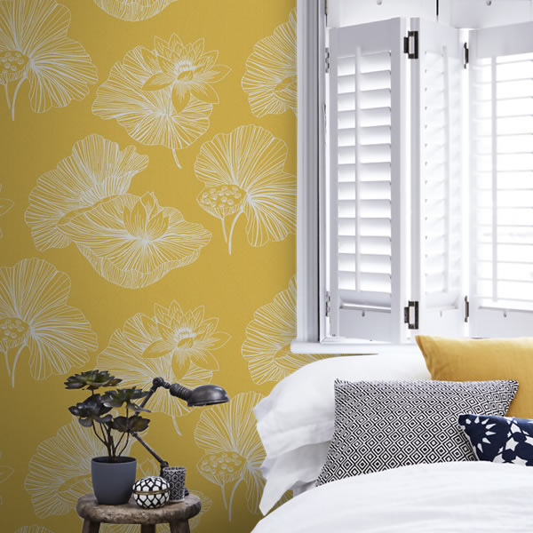 Symbolising purity and beauty, the Lotus flower is the focus of this stunning contemporary wallpaper. The design features lustrous metallic silver detailing printed on a lightly textured background. Shown here in the Summer colour.
