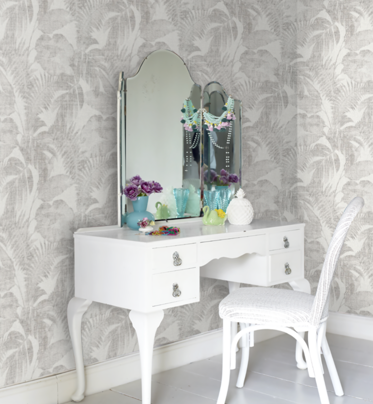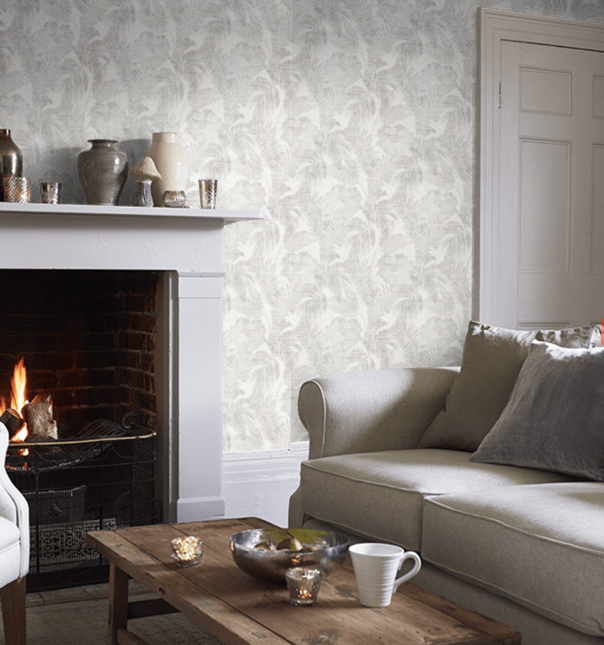 Simple and elegant faded palm leaves, injecting relaxation and bliss into any space. The neutral colour palette creates a cosy feel with a tropic undertone. Seen here in the Ivory / Graqy colour.