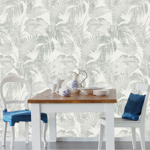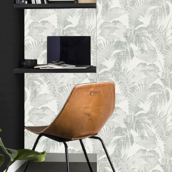 Simple and elegant faded palm leaves, injecting relaxation and bliss into any space. The neutral colour palette creates a cosy feel with a tropic undertone. Seen here in the Ivory / Green colour.
