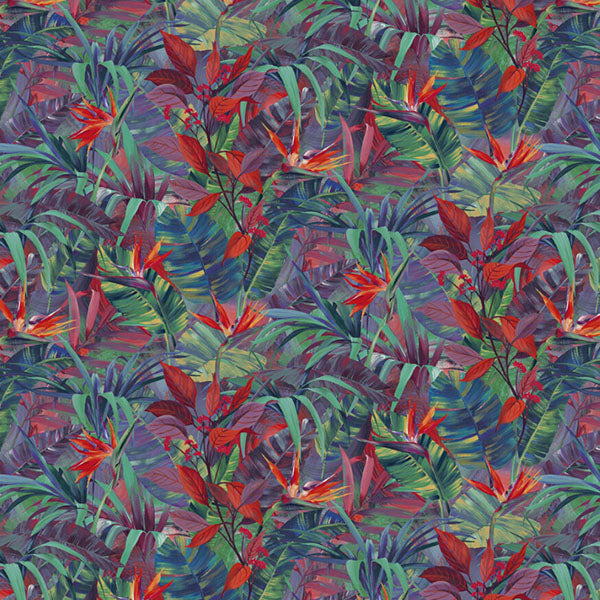 Thick and luscious oversized leaves cover this design with stunning high contrast colour and depth. Seen here in the Red Multi colourway. Please request a sample for true colour match.