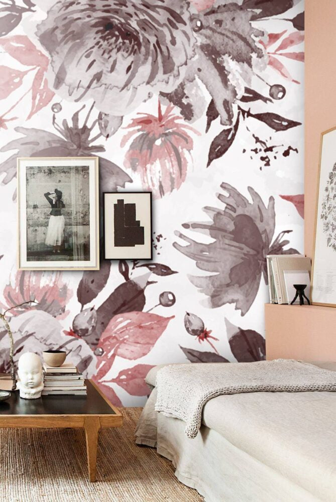 Pink And Grey Flowers Design BWMURAVIE-2400B
