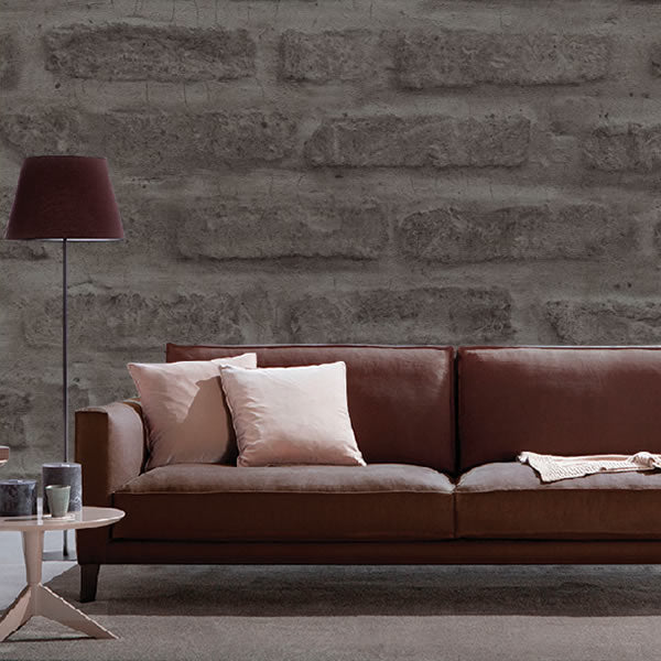 An all over design featuring an exposed brick effect; perfect for adding a touch of rustic modern interior. Seen here in the Ash colourway.