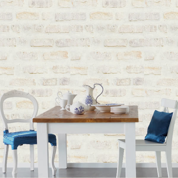 An all over design featuring an exposed brick effect; perfect for adding a touch of rustic modern interior. Seen here in the Beige colourway.