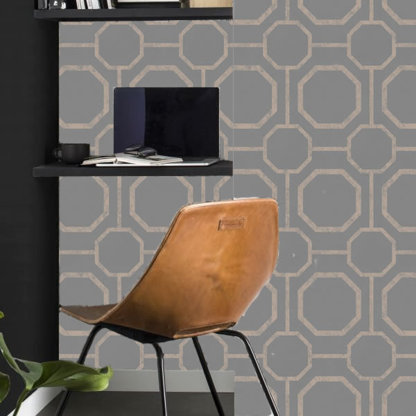 Sashiko Rose Gold / Grey Design Wallpaper