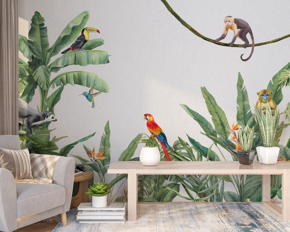 TROPICAL LEAVES WITH ANIMALS DESIGN