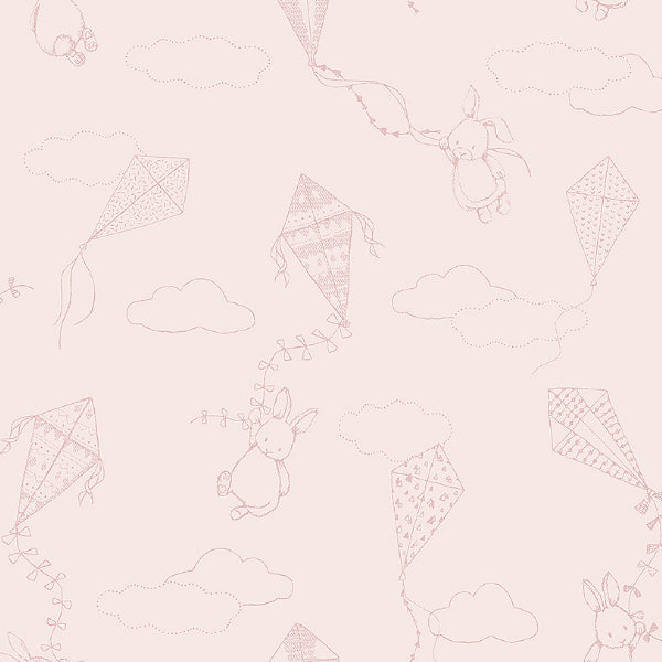 A whimsical yet simple design that features cute rabbits clutching soaring kites among the clouds. An adorable design for little adventurers! Seen here in the Light Pink colour.