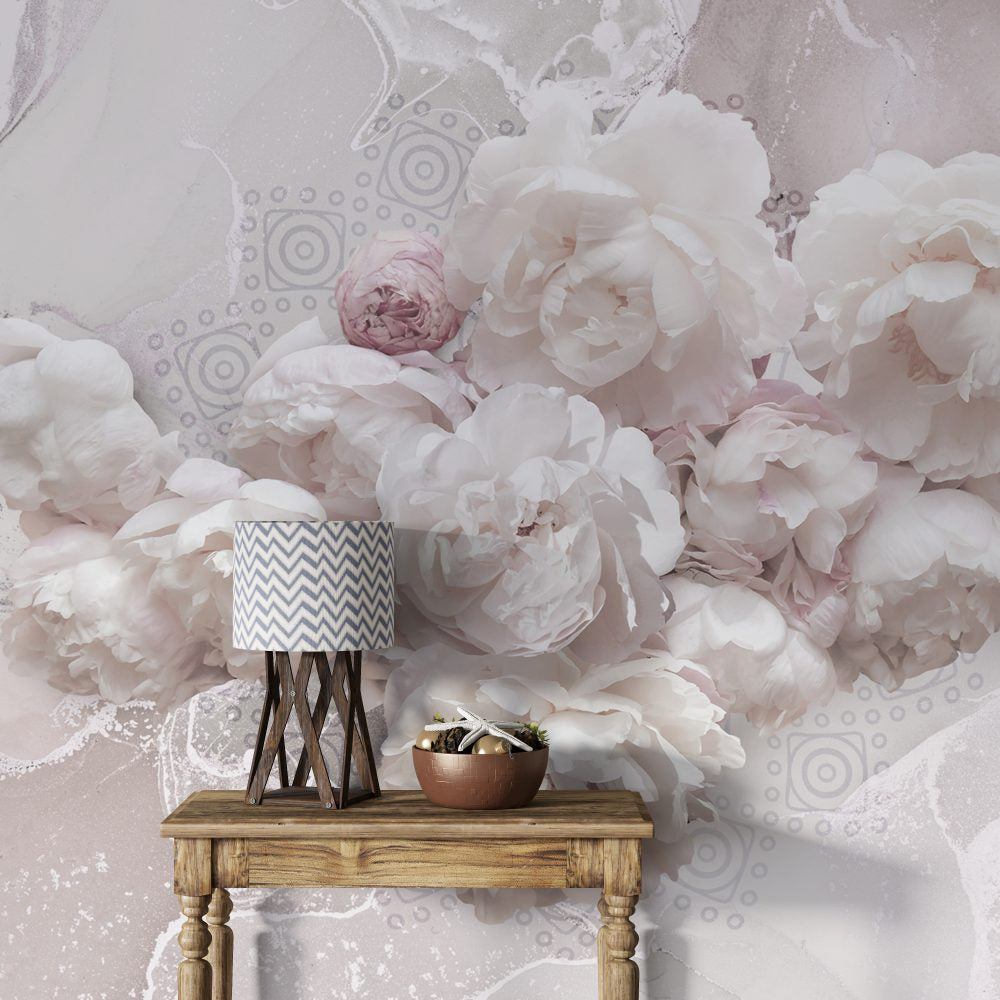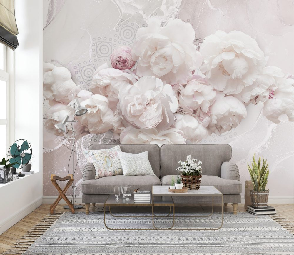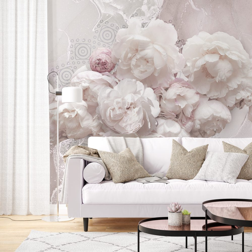 White And Pink Roses Design BWMUR8173