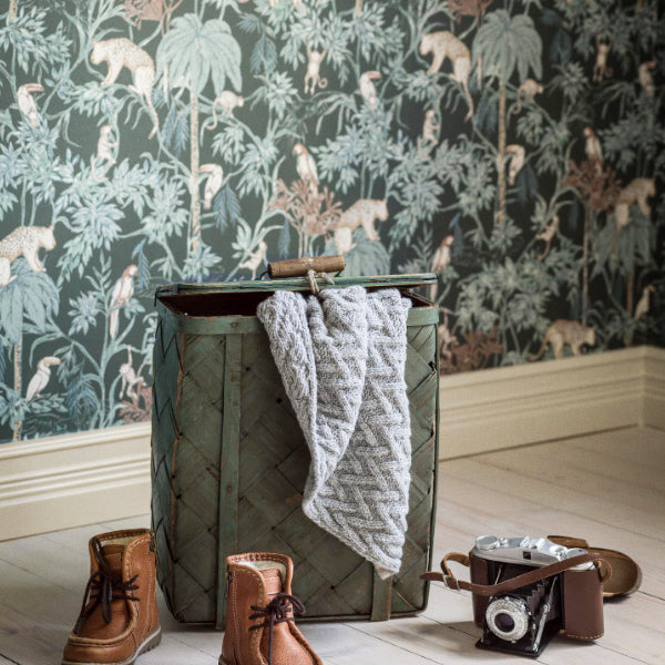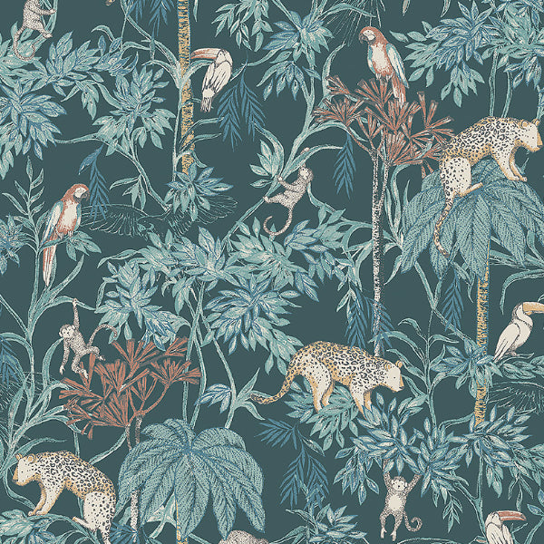 Welcome to the jungle! Leering leopards, swinging monkeys and talkative parrots can be seen amongst the thick, lush, entwining jungle greenery. Seen here in Dark Green colour.